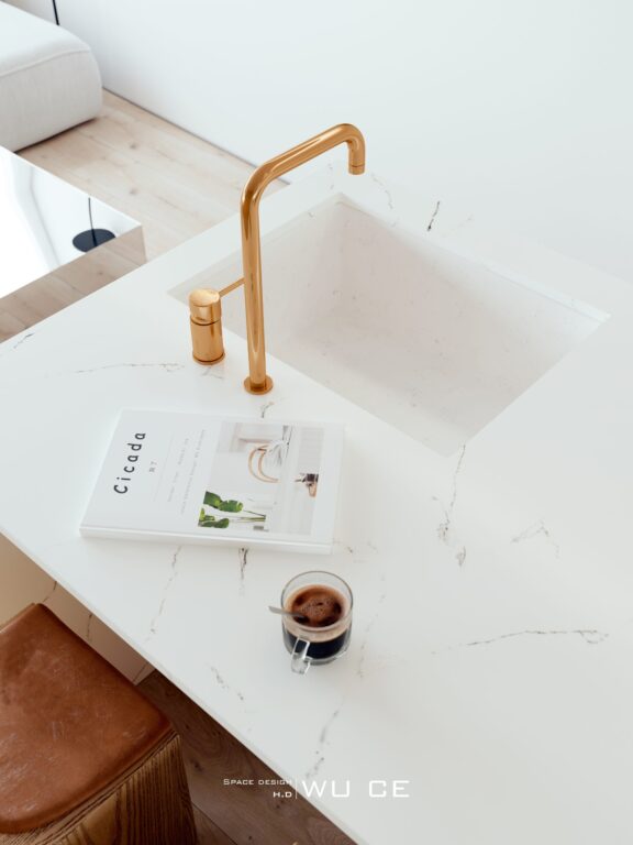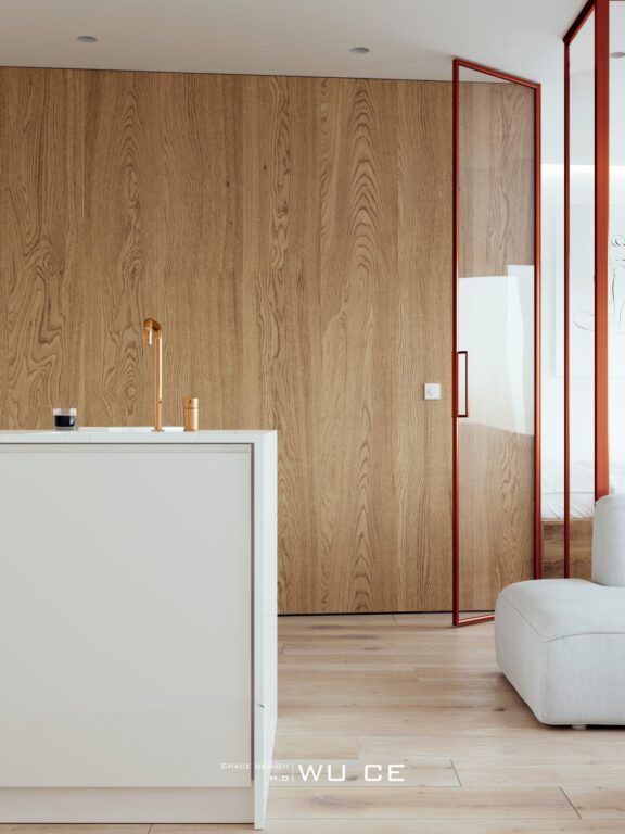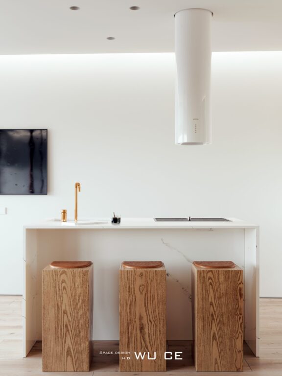 在大面積的留白 ,木制品的襯托下,整個空間干凈純粹,又不失溫暖。